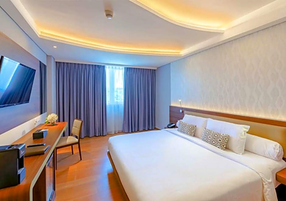 Deluxe Room is 301 square feet and includes a king-size bed 150-183 width.